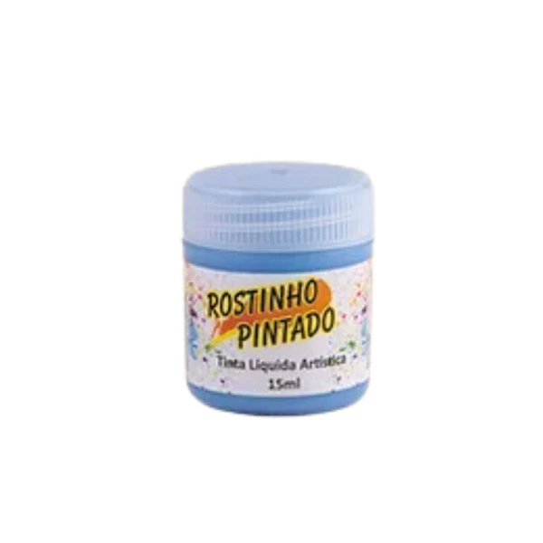 Tinta Liquida facial artistica 15ml azul claro da rostinho pintado. É uma tinta a base de água, com cheirinho de tutti-frutti, possui secagem rápida. Ideal para pintura facial e corporal. Características