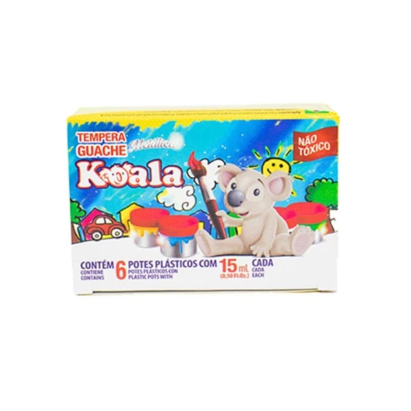 Tinta Guache 6 Cores Metálica 15ml Koala
