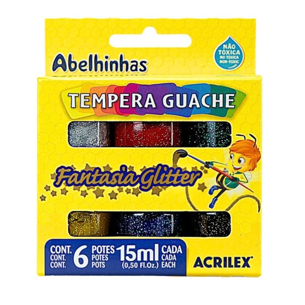 Tempera Guache 6 Cores Fantasia Glitter Acrilex