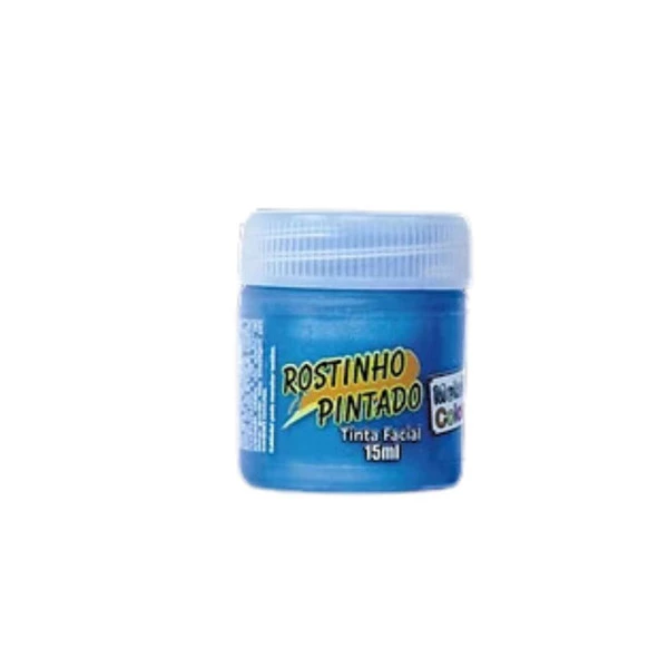 Tinta Liquida facial 15ml azul metallic collors da rostinho pintado. É uma tinta facial para maquiagem artística em cores metálicas. Sua composição é a base de água, com cheirinho de tutti-frutti, possui secagem rápida. Ideal para pintura facial e corporal. Características