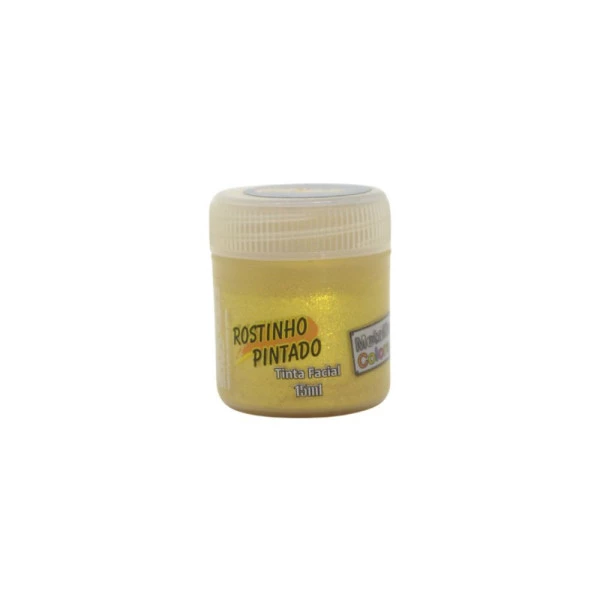 Tinta Liquida facial 15ml ouro metallic collors da rostinho pintado. É uma tinta facial para maquiagem artística em cores metálicas. Sua composição é a base de água, com cheirinho de tutti-frutti, possui secagem rápida. Ideal para pintura facial e corporal. Características