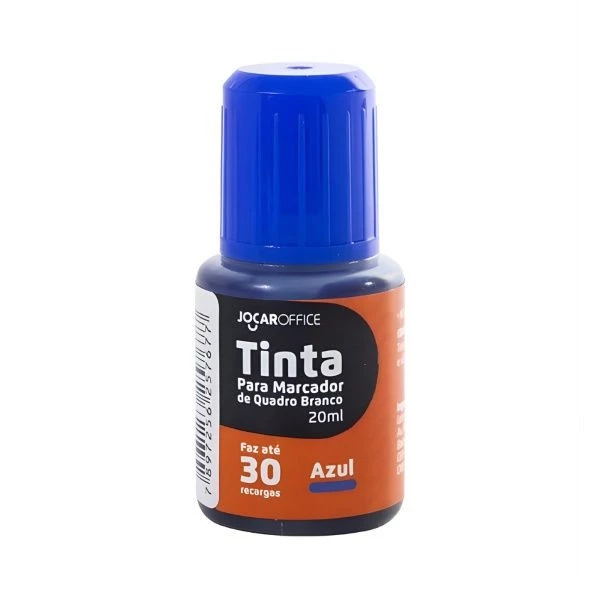 A Tinta para Marcador de Quadro Branco Jocar é a solução perfeita para renovar marcadores ressecados ou com baixa pigmentação. Com 20 ml na cor azul, oferece excelente cobertura, secagem rápida e escrita mais intensa.