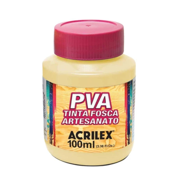 Tinta à base de látex PVA com acabamento fosco e secagem rápida. Indicada para artesanato em madeira, MDF, gesso, cerâmica, biscuit, cortiça, isopor, papel, palha e PET. Fácil de aplicar, com ótima cobertura e aderência. Ideal para trabalhos manuais criativos e personalizados. Características Tinta PVA Fosca Artesanato 100ml Amarelo Pêssego 538 Acrilex