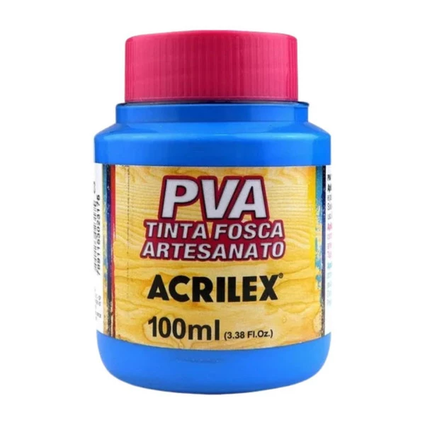 Tinta à base de látex PVA com acabamento fosco e secagem rápida. Indicada para artesanato em madeira, MDF, gesso, cerâmica, biscuit, cortiça, isopor, papel, palha e PET. Fácil de aplicar, com ótima cobertura e aderência. Ideal para trabalhos manuais criativos e personalizados. Características Tinta PVA Fosca Artesanato 100ml Azul Turquesa 501 Acrilex