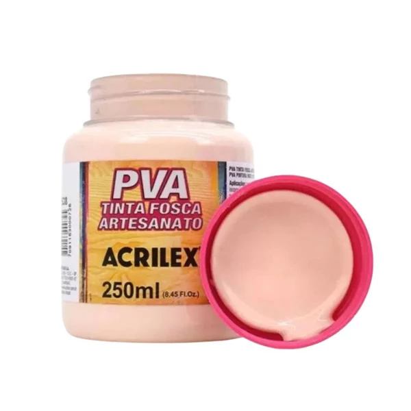 Tinta à base de látex PVA com acabamento fosco e secagem rápida. Indicada para artesanato em madeira, MDF, gesso, cerâmica, biscuit, cortiça, isopor, papel, palha e PET. Fácil de aplicar, com ótima cobertura e aderência. Ideal para trabalhos manuais criativos e personalizados. Características Tinta PVA Fosca Artesanato 250ml Amarelo Pêssego 538 Acrilex