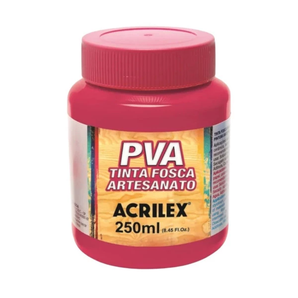 Tinta à base de látex PVA com acabamento fosco e secagem rápida. Indicada para artesanato em madeira, MDF, gesso, cerâmica, biscuit, cortiça, isopor, papel, palha e PET. Fácil de aplicar, com ótima cobertura e aderência. Ideal para trabalhos manuais criativos e personalizados. Características Tinta PVA Fosca Artesanato 250ml Rosa Escuro 542 Acrilex